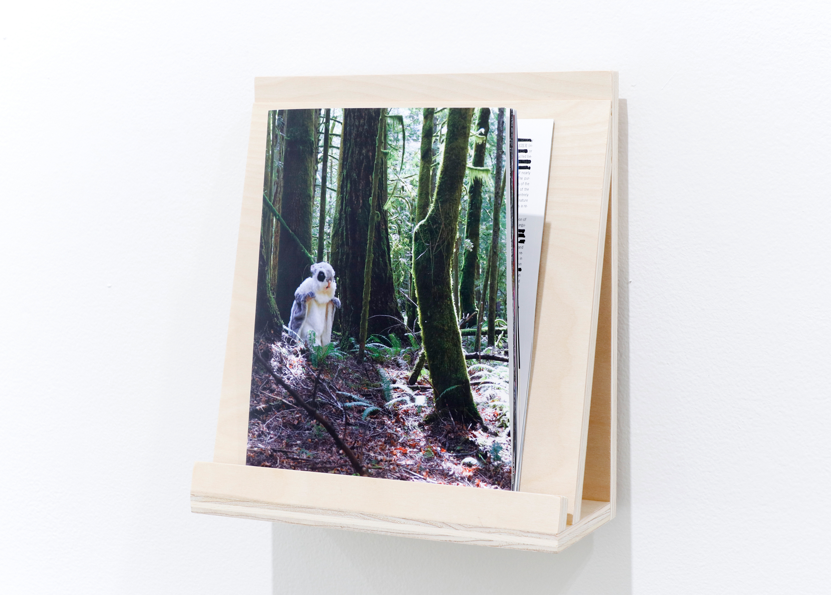 2022This exhibition tells the story of MegaSkwrl, a big-foot-like alien Siberian flying squirrel that causes anarchy and chaos in an effort to encourage us to be open to the unknown in a world where the predicted consequences of climate-change can feel determined and unchangeable. Inspired by the Fortean Times (a journal of paranormal phenomena), the accompanying book (Uncertain Times) is comprised of fake articles, personal essays, quotes, and a series of collages that sample from 90’s back issues of the Fortean Times, video stills from the X-Files (1993), collages the artist made while in high school in the 90’s, illustrations of Annie Besant’s Thought-Forms: A Record of Clairvoyant Investigation, and video-stills and camera trap photos of MegaSkwrl taken in the Olympic National Forest. The legendary squirrel and the conspiracy theories around it provoke questions about the ways both liberal and conservative politics use nostalgia, distrust of the government and authority, and the allure of aliens, monsters, magic, new-age practices, appropriated Indigenous ideas, and the unknown to provide meaning in all-too certain times.